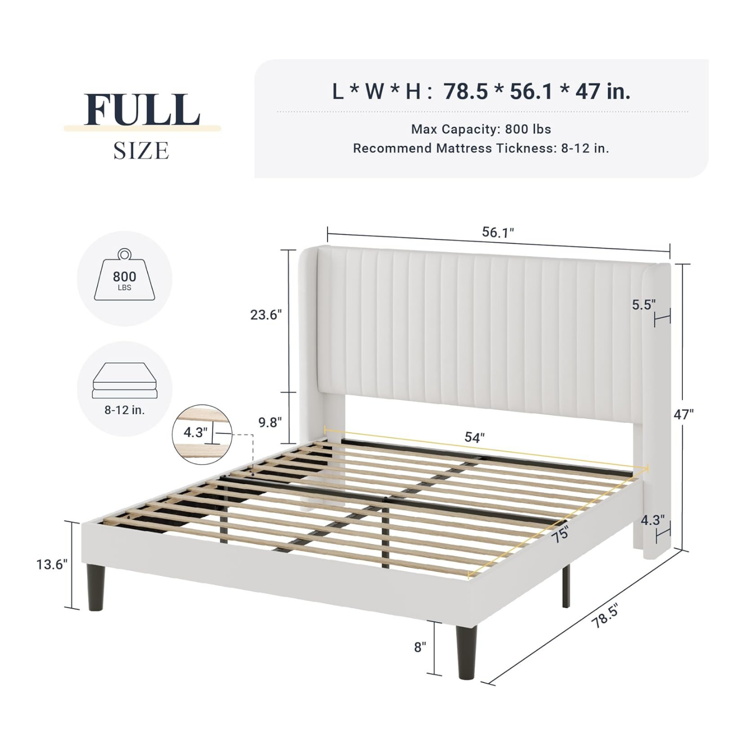 • Size: Full (approx. 80.3″ L × 55.9″ W × 45.9″ H for one variant)