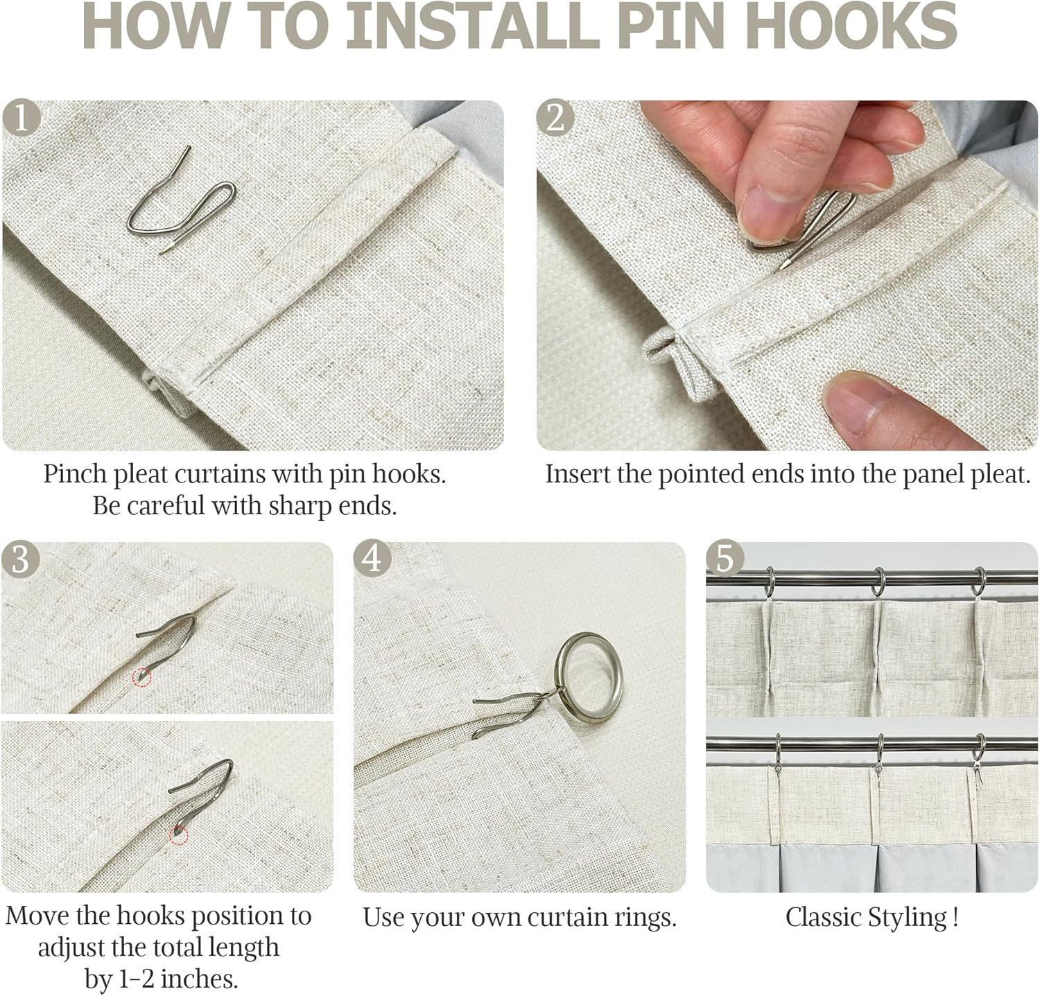 These curtains feature a classic pinch pleat design, providing a tailored and sophisticated drape that enhances any room’s décor. The linen-blend texture adds a touch of natural elegance while being durable and easy to maintain. The fabric is soft to the touch yet sturdy enough to resist everyday wear and tear. With their full blackout lining, these curtains block nearly 100% of sunlight, making them ideal for rooms where controlling light is essential. Additionally, the neutral natural color complements a wide variety of interior design styles, from modern and contemporary to classic and minimalist.