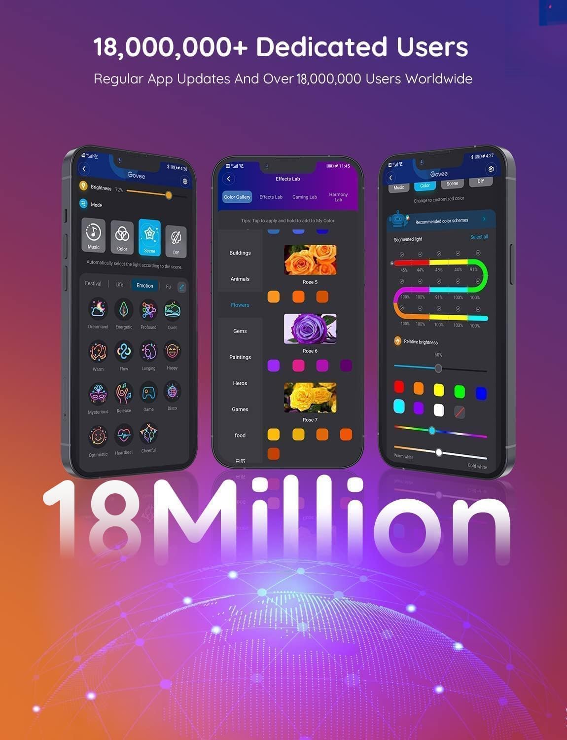 In addition, the app includes 64+ preset scenes, from “Sunrise” and “Fireworks” to “Romantic” and “Party.” Each preset is designed to match a specific vibe, helping you instantly switch the atmosphere of your room without any manual setup.