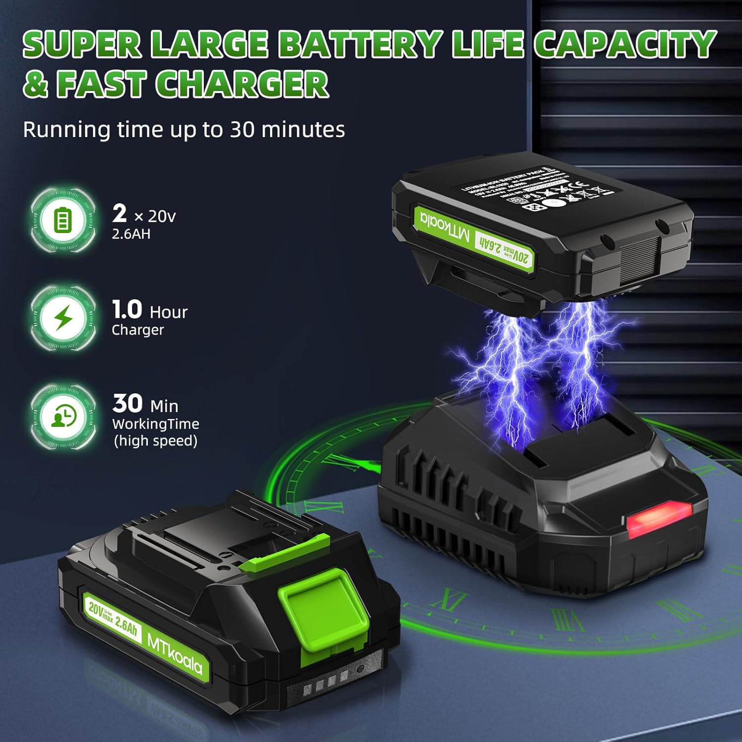 One of the biggest advantages of the MTKOALA Upgrade Cordless Leaf Blower is its dual 2.6Ah lithium-ion batteries that provide extended runtime. These rechargeable batteries work with a fast charger, minimizing downtime so you can complete big cleanup tasks in one go. Cordless operation gives you total freedom of movement, eliminating tangled cords and outlet limitations. You can use it anywhere — gardens, garages, decks, or large outdoor spaces.